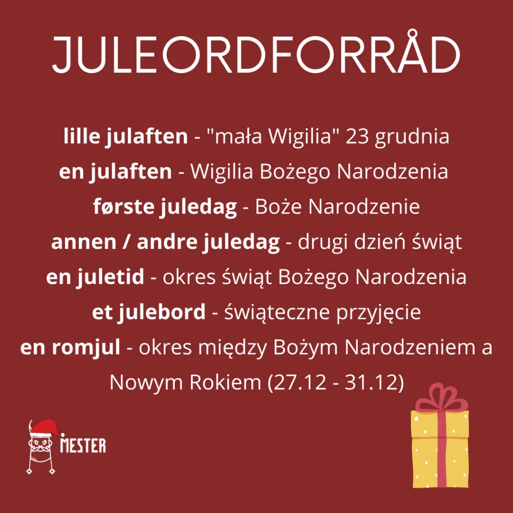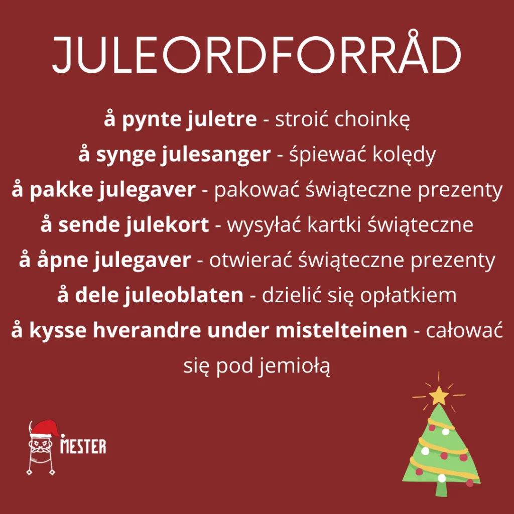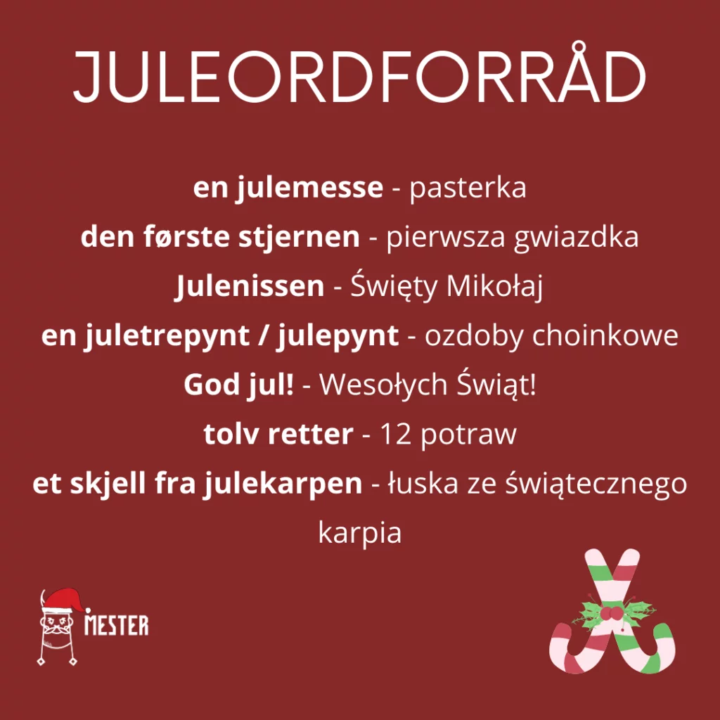 Poniżej zebrałam dla Was najpopularniejsze wyrażenia oraz słowa związane z obchodzeniem Świąt Bożego Narodzenia w Norwegii oraz Polsce.