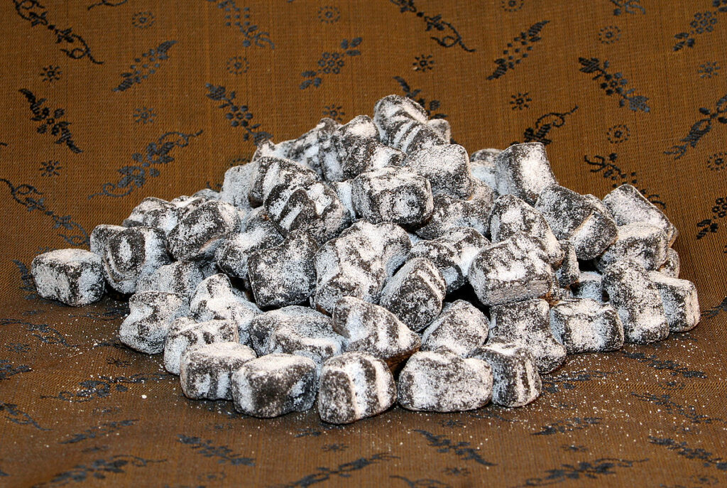 Podczas gdy my mamy węgiel, to Duńczycy mają lukrecję – skandynawskie czarne złoto. Czy nam się to podoba czy nie, lukrecja jest jednym z najpopularniejszych słodkich (?) przysmaków w Danii. Chociaż, czy można ją w ogóle nazwać słodyczą… to jest już kwestia kontrowersyjna. Zwłaszcza, że Duńczycy gustują w lukrecji hojnie przyprószonej solą, ale nawet jej słodka wersja może wprowadzić w zakłopotanie swym charakterystycznym ziołowo-medycznym smakiem. Na pewno nie jest to rzecz, która przypadnie do gustu każdemu, kto nie jest tresowany od dziecka, że ma właśnie do czynienia z wyśmienitym frykasem – jak np. Duńczycy. Niektórzy uważają, że do lukrecji trzeba się przyzwyczaić – zjeść kilka razy, aż kubki smakowe oswoją się z nowym doświadczeniem. Cóż… koniec końców coś w niej musi być, bo miłośników lukrecji nie brakuje – zwłaszcza na północ od Polski.